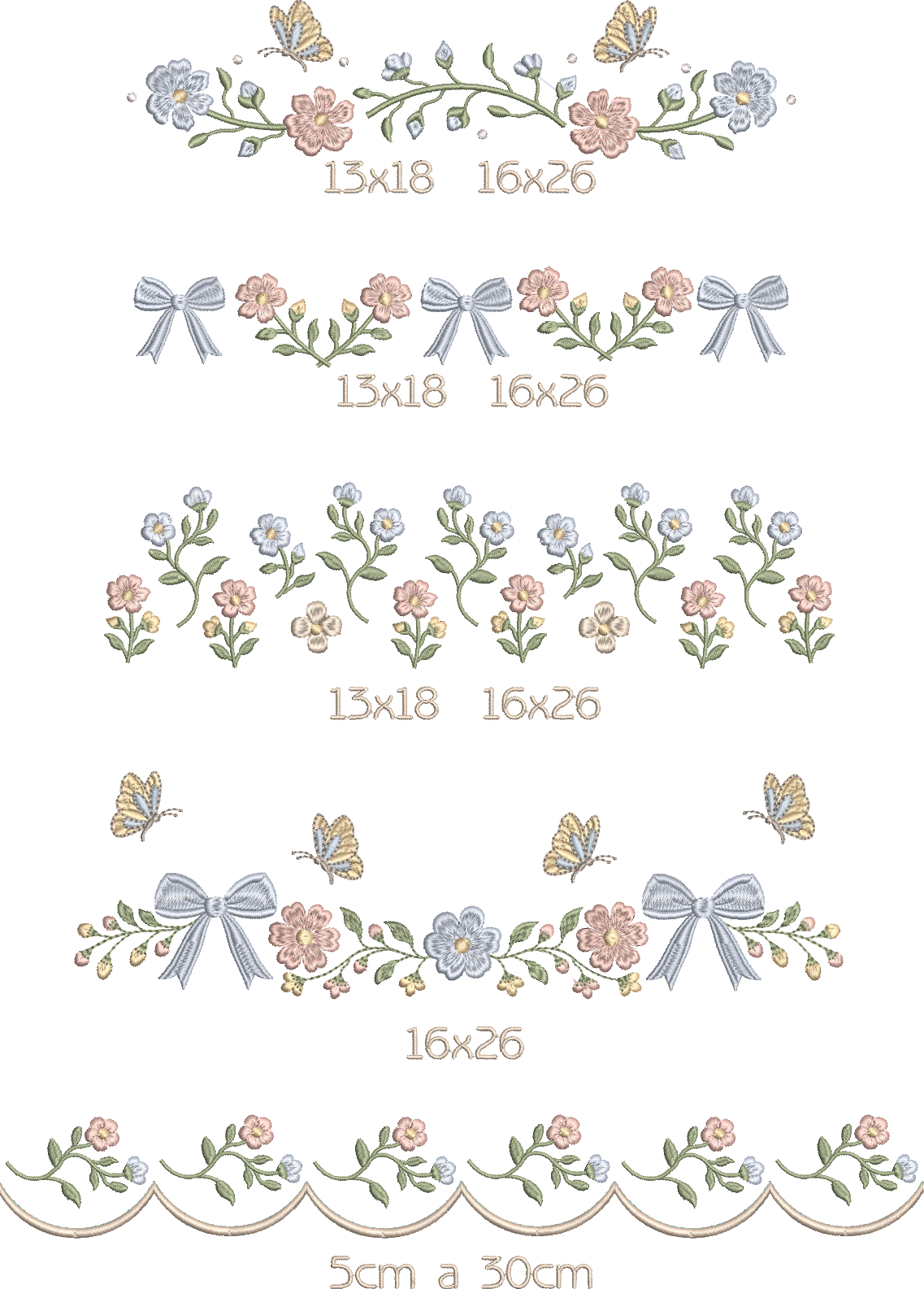 Flores suaves, atemporais, molduras que abraçam a peça sem pesar.